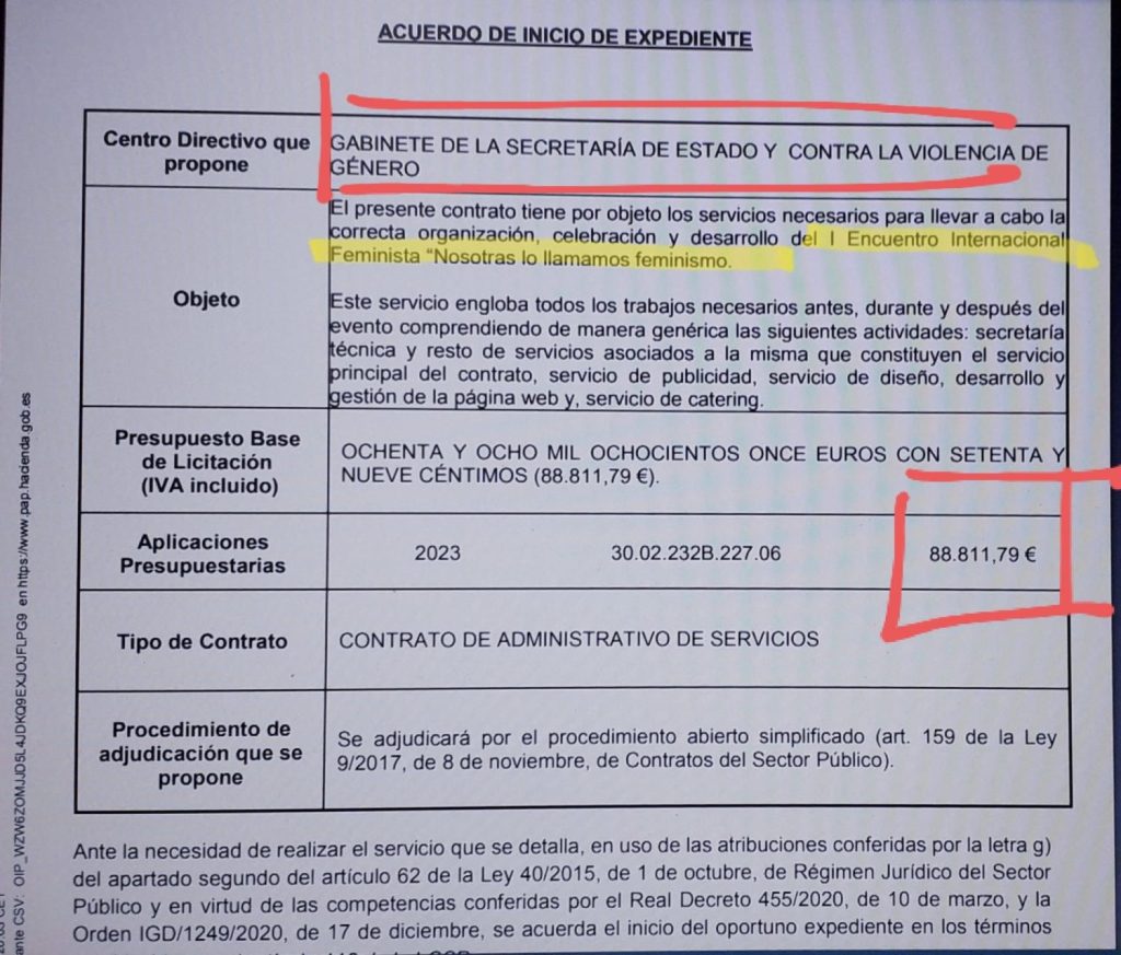 Al Ministerio de Igualdad la crisis económica no le ha tocado, pues solo basta que a alguna de sus altas directivas se les ocurra que hay que hacer algún evento para feministas, para que los recursos salgan del jugoso presupuesto que el Ejecutivo de Pedro Sánchez les ha aprobado. El más reciente capricho del despacho que dirige Irene Montero es gastarse 88 mil euros en la publicidad, la página web y el catering este nuevo show que se celebrará a finales de febrero.
