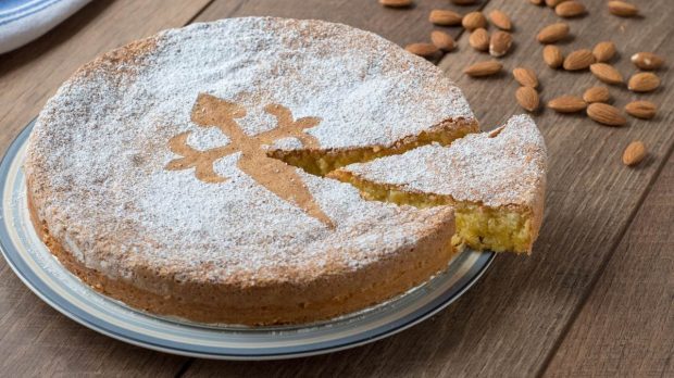 Terminamos con otro postre típico de Semana Santa en España, especialmente en la región de Galicia. Es un pastel de almendra y azúcar, decorado con una cruz de Santiago en azúcar glas. La tarta de Santiago tiene su origen en la Edad Media, cuando se preparaba como ofrenda para los peregrinos que visitaban la tumba del apóstol Santiago en la Catedral de Santiago de Compostela. Con el tiempo, se convirtió en un postre popular para la Semana Santa y se sigue disfrutando en la actualidad.