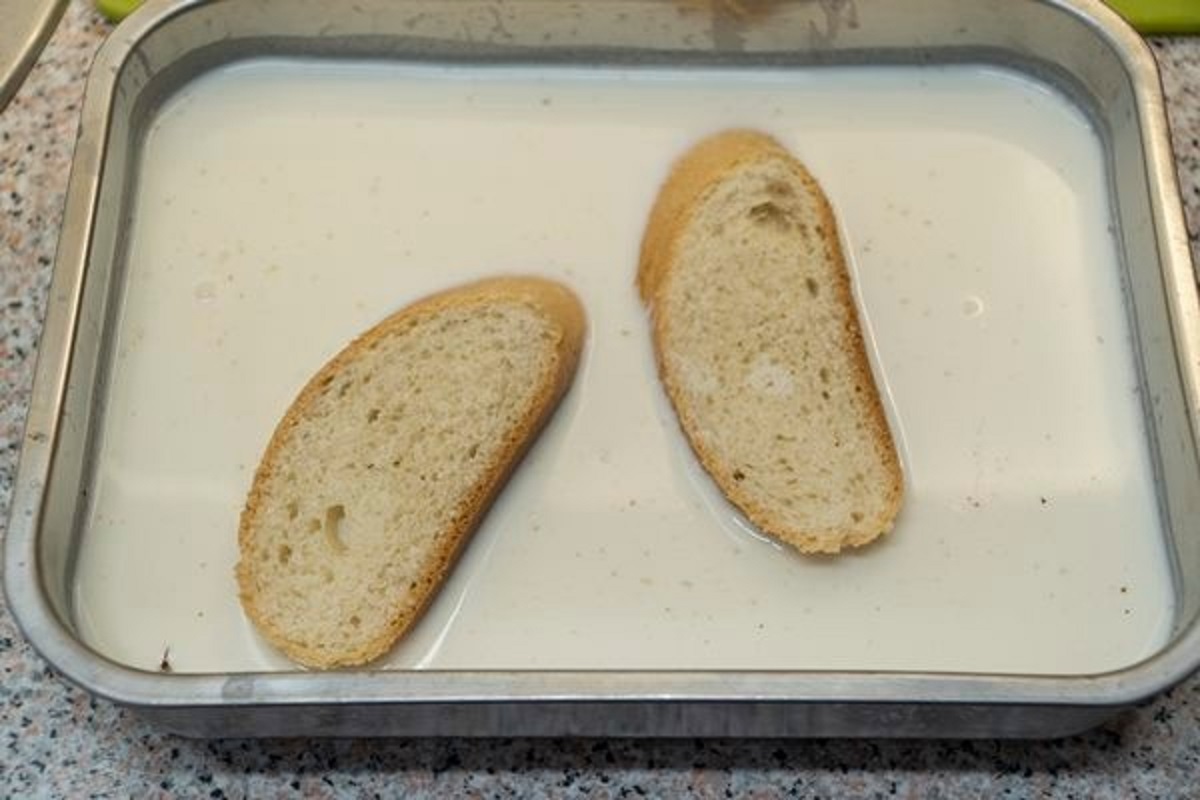 No hay que preocuparse si se ve las torrijas demasiado empapadas, porque en este caso soltará la leche sobrante en la bandeja con la rejilla. Rebozamos cada rebanada con pan en huevo batido. Ponemos aceite de girasol u oliva suave en una sartén. Freímos a fuego medio con abundante aceite por 30 segundos cada lado. Las ponemos en un papel de cocina para evitar el exceso de aceite. Las pasamos por azúcar y canela todavía calientes. Otra opción es ponerles azúcar y caramelizar en el horno o con la ayuda de un soplete, poner miel encima, almíbar, caramelo de anís. En este último punto el objetivo es que la torrija no se seque.