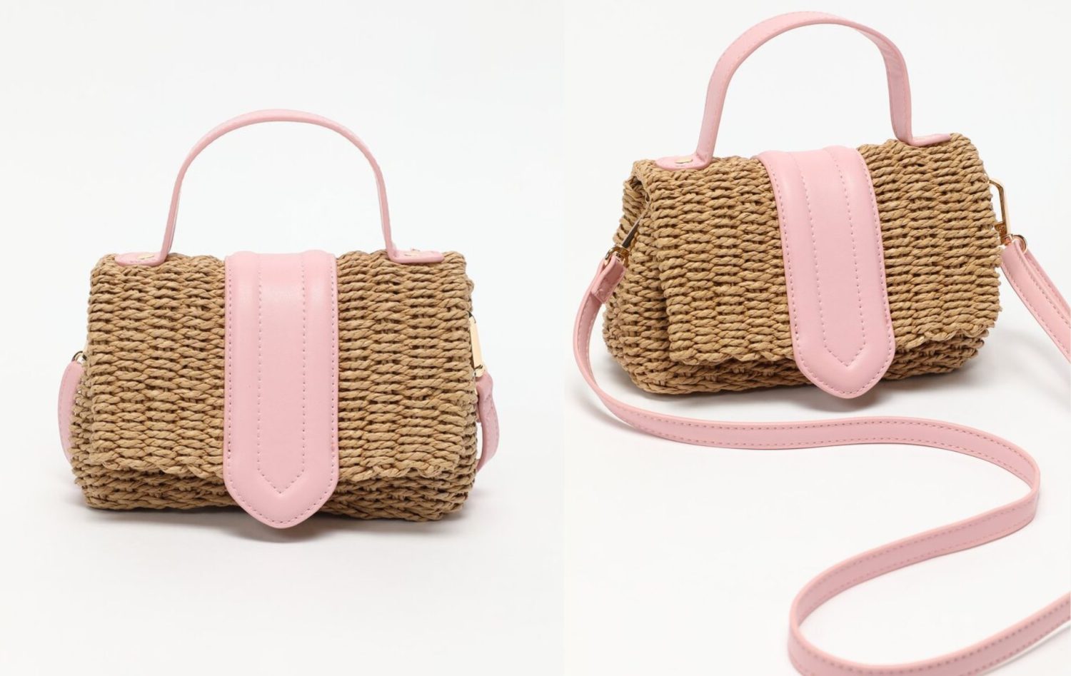 El bolso está hecho de rafia, un material natural y resistente que lo hace perfecto para el verano. Está disponible en diferentes colores, por lo que seguro encontrarás uno que se adapte a tus gustos y estilo personal. Si prefieres algo más clásico, puedes elegir el bolso en color negro de rafia. Si, por el contrario, prefieres algo más atrevido, elige el bolso en un color natural con el asa de contraste en color rosa.