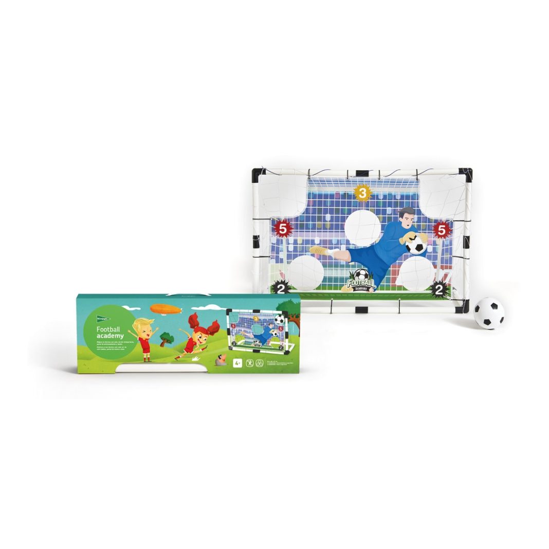 Este set de portería y balón es perfecto para divertirse en el jardín. Está pensado para niños y niñas a partir de 4 años y permite dos modalidades de juego: entrenamiento y libre. Para el entrenamiento se coloca un panel sobre la portería y se debe colar el balón por los agujeros. El kit incluye una portería, un balón, bomba de inflado y panel de entrenamiento, que además cuentan con algunas funciones sonoras. Las medidas de la portería son 122 x 81 x 57 cm. Su precio es de 45,95 euros.