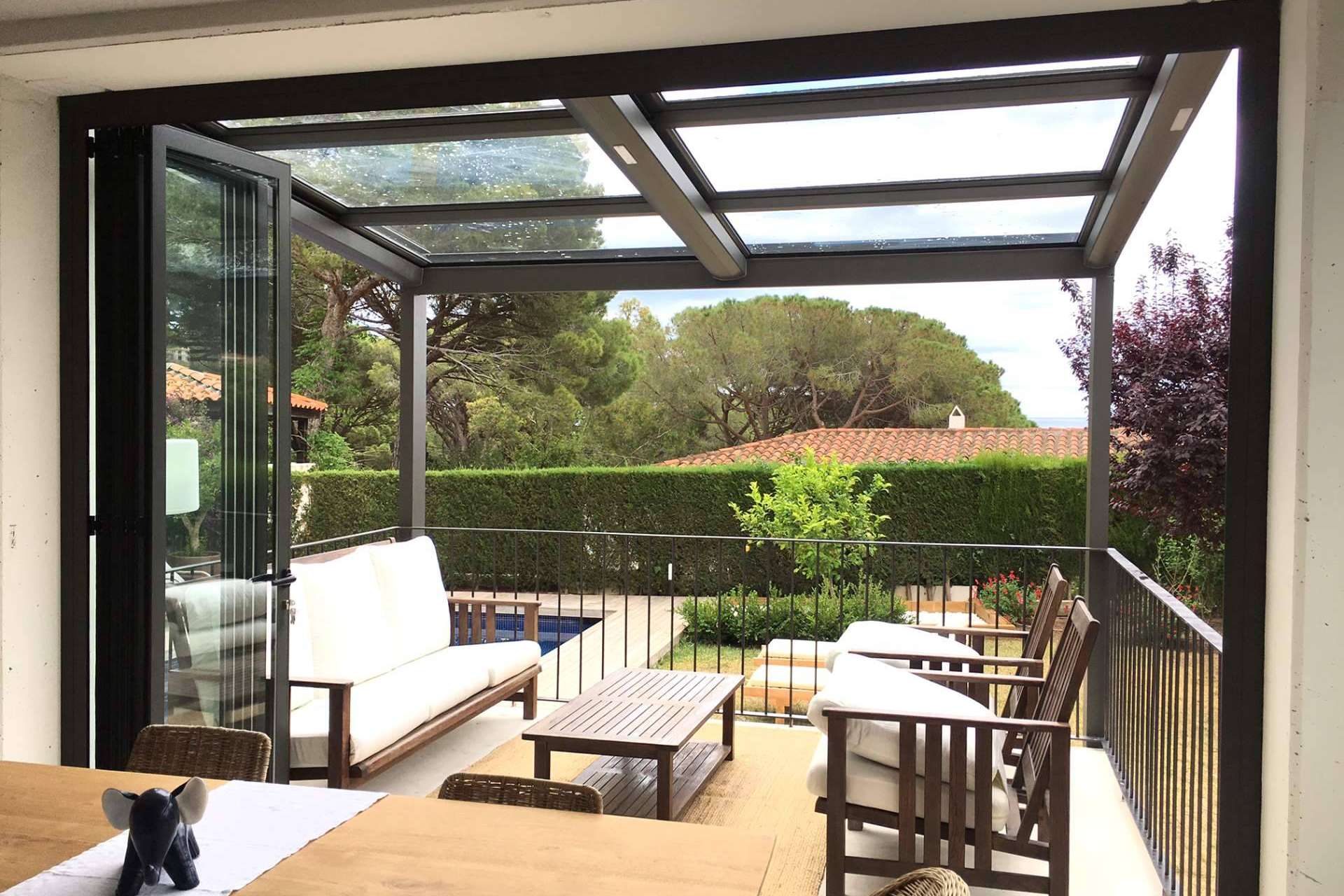 Otra opción es el techo móvil, que permite abrir o cerrar el porche con el uso de paneles de vidrio que permiten conservar la vista del espacio.