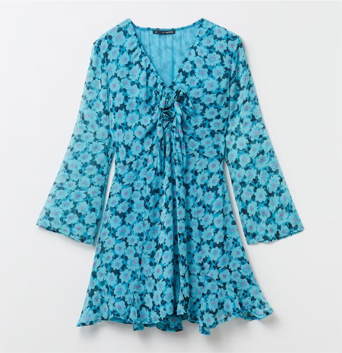 Sin duda, este vestido de flores con cuello pico y fruncido delantero es una de las mejores opciones para lucir el mejor aspecto. En tono turquesa por 35,99 euros, es una prenda que no debe faltar en tu poder.