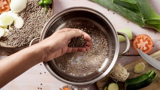 3PRIMEROS PASOS PARA HACER LAS LENTEJAS CON CALABAZA