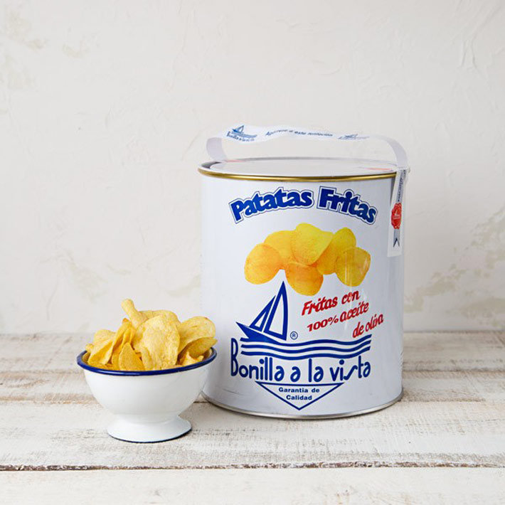 Estas patatas fritas no son solo de bolsa, sino que se comercializan también en lata. De esta forma se mantienen enteras y protegidas de golpes que las puedan aplastar. Están fabricadas en Galicia, y son un producto tan tradicional que se remonta al año 1832, cuando la familia Bonilla empezó a vender patatas en sus churrerías. Hoy día siguen siendo unas patatas gourmet, con el grosor perfecto y supercrujientes, fritas en el mejor aceite de oliva. La bolsa de 150 gramos sale a 2,70 €. La lata de 250 gr. cuesta sobre los 11 €.