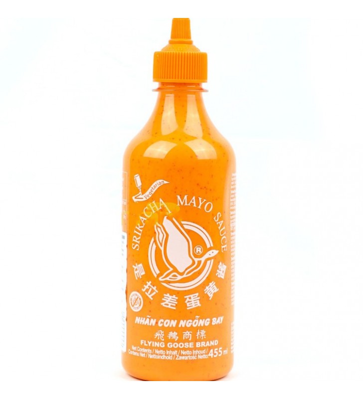 Flying Goose es una de las marcas más conocidas de siracha. Esta es una salsa de estilo picante que procede del sudeste asiático y que ahora se ha convertido en una de las más utilizadas en la cocina. Además, la mayonesa especial de la marca no lleva huevo, por lo que es vegana. Se puede encontrar en tiendas asiáticas especializadas por unos 3,50 euros los 200 ml.