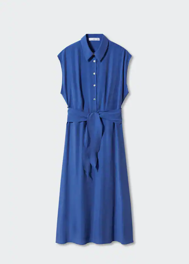 Los vestidos de estilo camisero son siempre un acierto. No pasan de moda, son cómodos y resultan muy favorecedores en cualquier tipo de cuerpo. Mango nos propone este bonito modelo con un diseño recto y midi, con el cuello camisero clásico, manga corta y cierre de botones en la parte frontal. Se complementa con un cierre de lazo en la cintura para marcar la silueta y darle un toque más femenino. Es de modal y poliéster, el tejido es muy fluido y suave y es de un color azul intenso. Está disponible también en tallas plus, por un precio de 39,99 euros.
