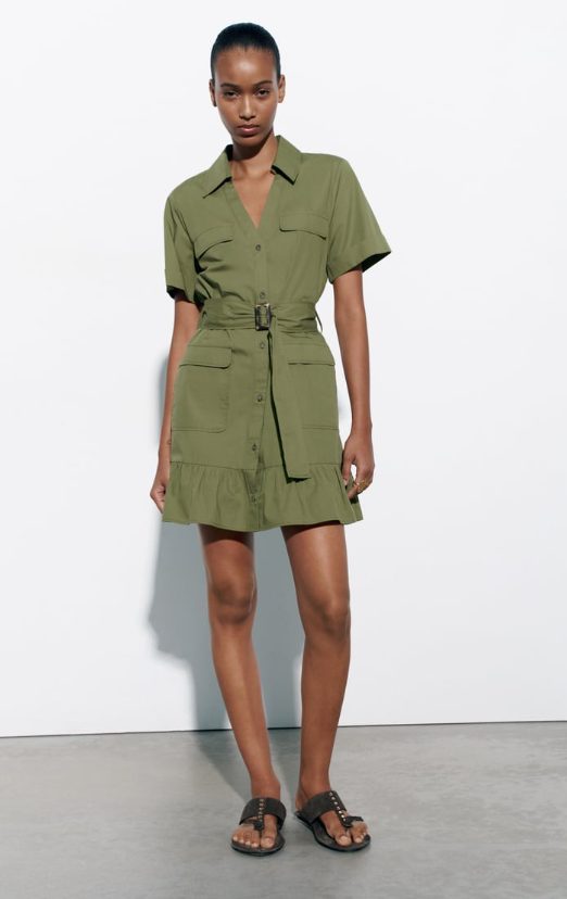 Las prendas de diseño casual se convertirán en tus favoritas para esta nueva temporada. Esto es justo lo que sucederá con este vestido de Zara. Disponible en un bonito tono verde tierra, destaca gracias a su diseño camisero y a detalles como su cinturón, que hacer que tu figura se marque. En cuanto a su precio, te puedes hacer con él por solo 35,95 euros.