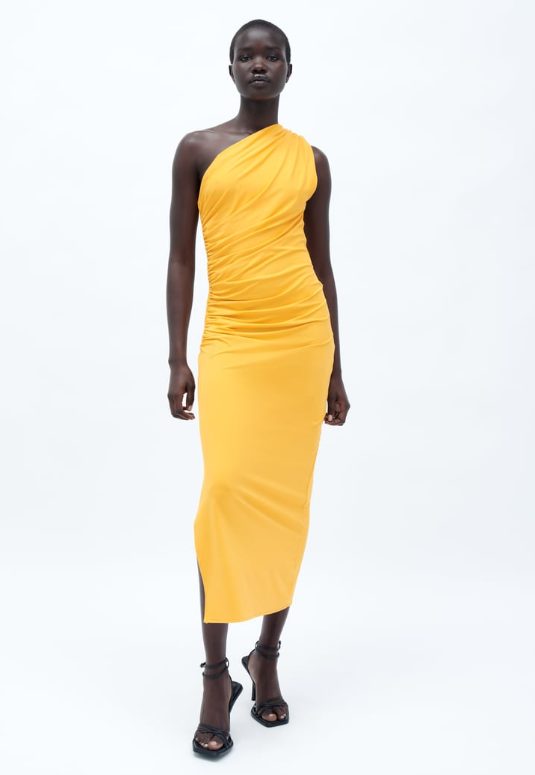 Los vestidos amarillos siempre consiguen captar todas las miradas. Mucho más si a eso se le une el diseño asimétrico de esta opción de Zara, que tiene tan solo un hombro, así como su corte midi, uno de los más elegantes. En cuanto a su precio, te puedes hacer con él por tan solo 22,95 euros. Sin duda, será una de esas opciones que merecen la pena.