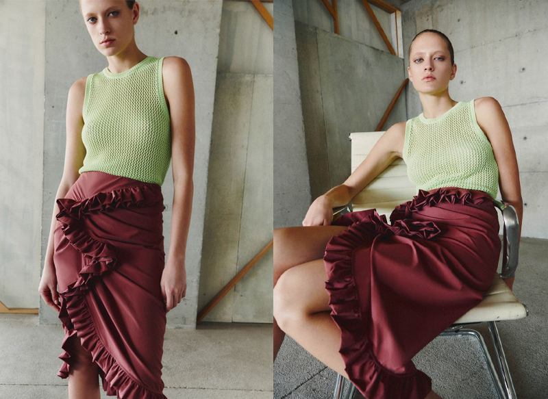 En la firma perteneciente al grupo de El Corte Inglés nos encontramos con propuestas para todos los gustos y necesidades, tanto para quienes buscan looks más modernos como para quienes prefieren algo más clásico. Entre sus novedades se encuentra su top cuello caja, que se vende en color verde pastel y en azul klein.