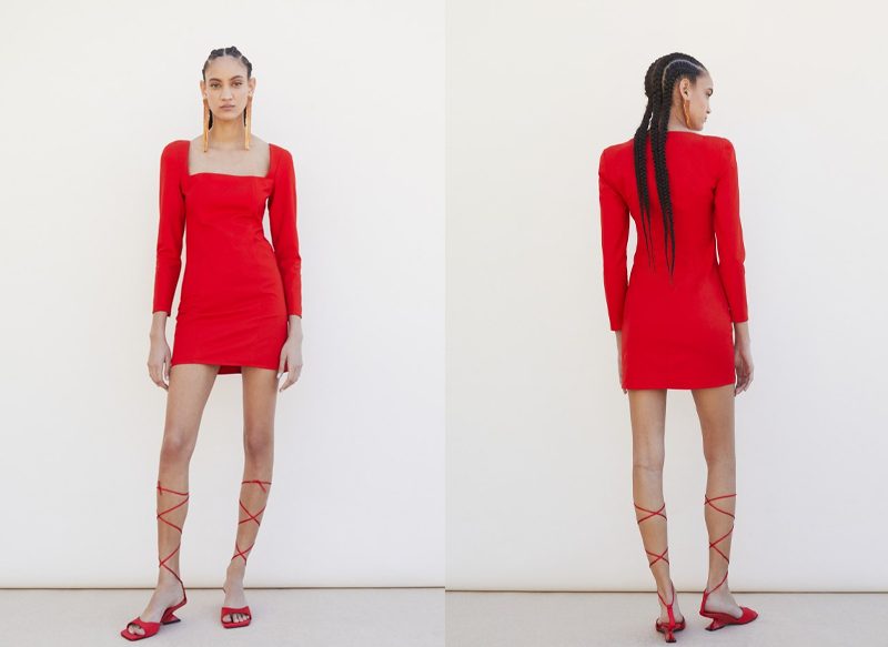 Es un vestido corto ajustado de manga larga que tiene el escote cuadrado y un cierre con cremallera. Es una prenda a la venta en tallas XS, S y M, en color rojo, y que tiene un precio de venta actual de 39,99 euros. Por su diseño podrás utilizarlo en combinación con diferentes tipos de calzado para que puedas darle un toque más formal o casual, según la ocasión.
