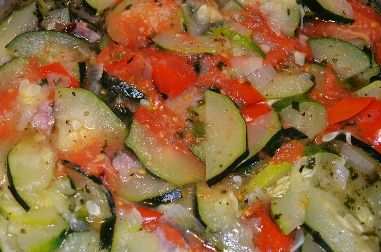 El siguiente paso consiste en engrasar una fuente especial para el horno con un chorro de aceite de oliva. Ahora, puedes comenzar a montar tu pastel de calabacín y atún. Para ello, coloca una primera capa de calabacín y, encima, pon otra de tomate. Agrega una pizca de sal y un poco de orégano y continúa montando por capas.