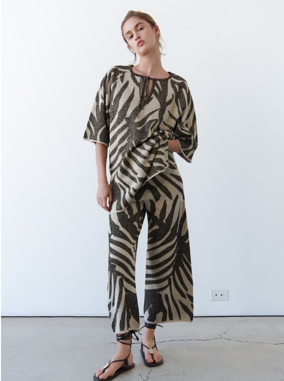 7Pantalón de punto jacquard con diseño de hojas de Zara, para vestirlo a diario