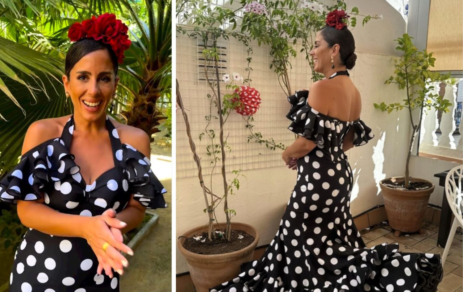 La popular sobrina de Isabel Pantoja, Anabel Pantoja, tampoco podía perderse la Feria de Abril de Sevilla y este año no decepcionó con su atuendo. La colaboradora de televisión optó por un look muy sexy y atrevido, luciendo un vestido de flamenca en color negro con lunares blancos. El diseño presentaba hombros descubiertos y un escote halter que realzaba su figura, así como un escote corazón en la parte delantera.