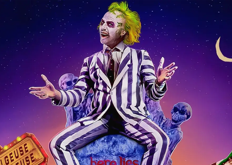 El protagonista de esta película de cine no es otro que Beetlejuice, un personaje inventado por Tim Burton que da origen al nombre de la cinta. Este es un difunto que reside en el «no mundo», una recreación del mundo real según la visión de los muertos.