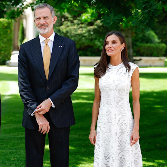 Durante el evento, los reyes dieron una cálida bienvenida a la pareja y la Reina volvió a demostrar su buen gusto a la hora de elegir su atuendo. En esta ocasión, aunque no estrenó un vestido nuevo, actualizó casi por completo su vestido midi blanco más especial de su armario.