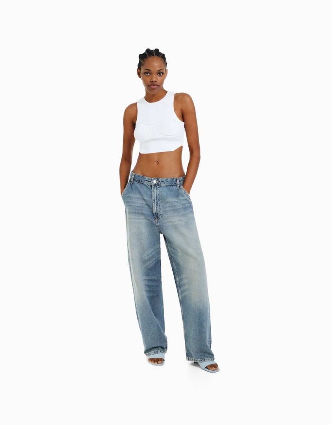 Siguiendo con la familia de los ‘jeans’, Bershka tiene en su catálogo estos fabulosos pantalones que mimetizan varios colores. Resultan ideales para espantar el frío y estupendos para combinar con musculosas y diferentes camisetas de tirantes. Las botas se pueden llevar por debajo y seguir aprovechándolas, aun en instancias en las que no queremos que sean las protagonistas. Valen 29,99 euros.