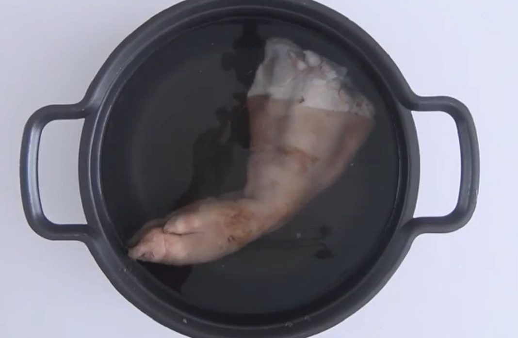 También pondremos en remojo la uña de cerdo con su codillo. También dejaremos el remojo en agua el zumo y las pieles del limón. La carne del estómago de ternera y la pata quedarán desde la noche anterior. Esto facilitará la limpieza de carnes, aunque es verdad que ahora se venden mucho más limpias que en antaño.