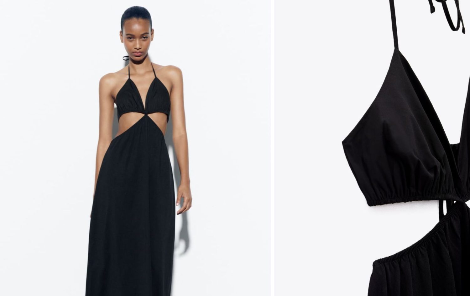Otro vestido al estilo Cut de Zara que causa sensación esta temporada. En tono negro, es la prenda perfecta para lucir atrevida y juvenil en cualquier evento especial. Con su diseño en escote pico y lazada ajustable en cuello, este vestido combina sensualidad y sofisticación de una manera única y atractiva.