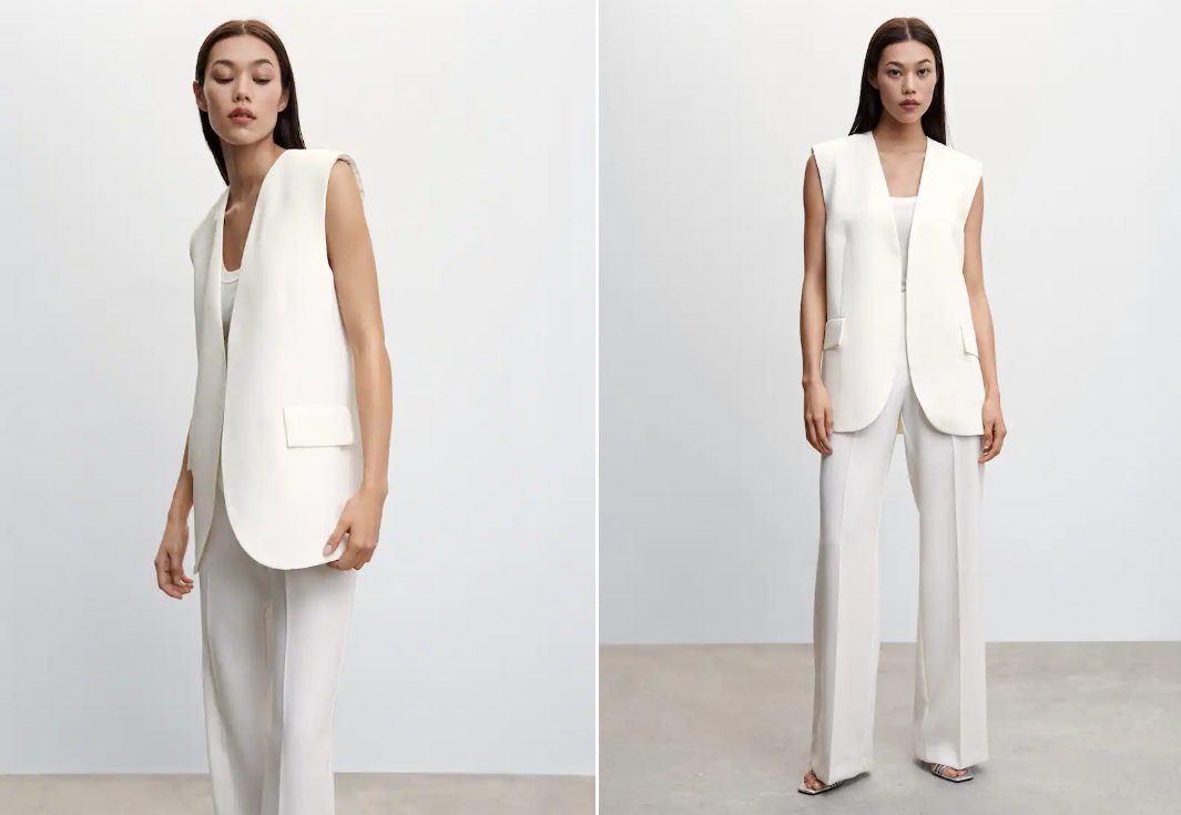 Dentro de la sección de novedades de Mango también llaman la atención una gran cantidad de prendas sofisticadas y elegantes. Un buen ejemplo lo tendrás en este chaleco de estilo oversize. Con diseño de solapas amplias y disponible en el color blanco más buscado de la temporada, además lo puedes conseguir por solo 59,99 euros.
