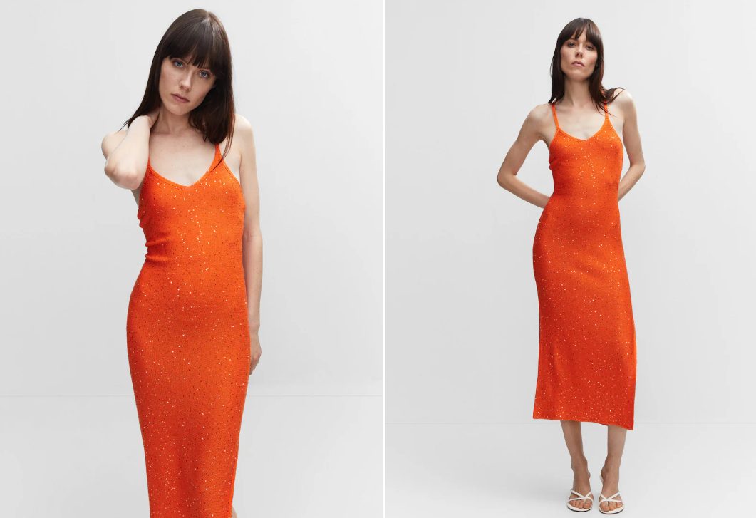 Este vestido de Mango es uno de los que mejor quedan para una ocasión especial. Su color naranja vibrante lo convierte en el más especial para tus eventos primaverales o veraniegos. Asimismo, destaca gracias a su detalle de lentejuelas, que recorren toda la prenda para darle un toque brillante único. En cuanto a su precio, lo tienes disponible por solo 45,99 euros.
