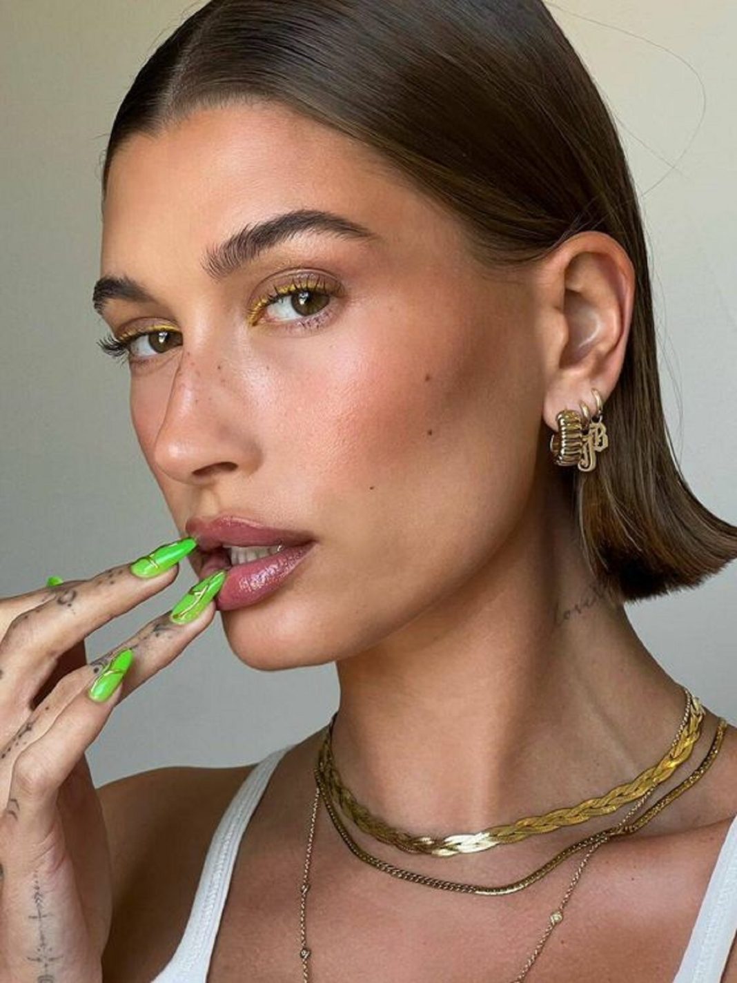 Los acabados neón quedan espectaculares en la manicura en aquellas personas a las que les gusta salir y lo lucen en las discotecas. La luz negra clásica que se suele poner hace que el contraste sea glorioso. Después de colgar una fotografía en Instagram, ¡todo el mundo querrá copiarte! Muchos descubrieron este tratamiento gracias al perfil de redes sociales de Hailey Bieber, quien lo publicó en sus ‘stories’. Lució unas estupendas uñas almendradas brillantes a juego con las de Kylie Jenner.