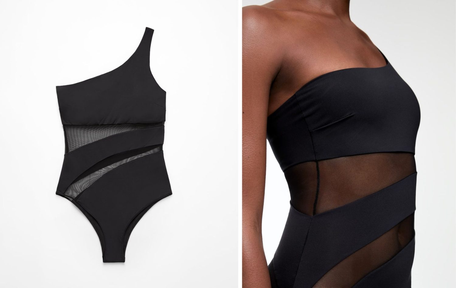 La tendencia de los bikinis asimétricos también se ha fusionado con las transparencias en un diseño único y vanguardista que añade un toque de estilo y originalidad a tus outfits playeros. Las transparencias crean un efecto visual único y sensual, y el bañador asimétrico con transparencias de Oysho, nos invita a jugar con ellas para mostrar nuestro cuerpo estratégicamente.