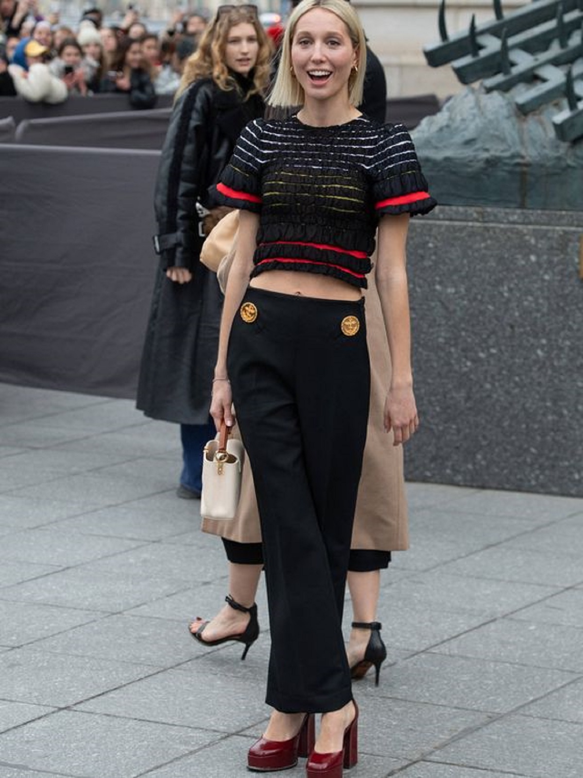 Olympia de Grecia nos dejó con la boca abierta al acudir al desfile de Louis Vuitton con un calzado de esta categoría. Se celebró en la Semana de la Moda de París el pasado mes de marco. Para completar un estilismo digno de la maison francesa, lució sus increíbles zapatos de plataforma y tacón ancho. Optó por unos salones titulados “Fame”.