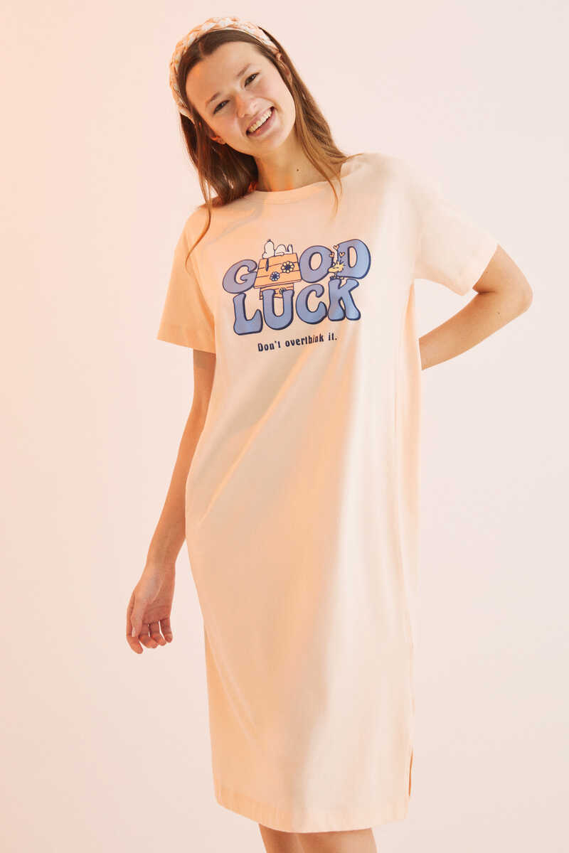 Este camisón de Snoopy es todo lo que necesitas para los días de verano. Ideal para luchar contra el calor sin renunciar al estilo, llama la atención gracias a su bonito tono naranja suave, muy parecido al salmón, así como por su diseño de manga corta. Cómodo y funcional, ahora te puedes hacer con él por tan solo 15,99 euros en lugar de 32,99. Sin duda, una gran oportunidad.