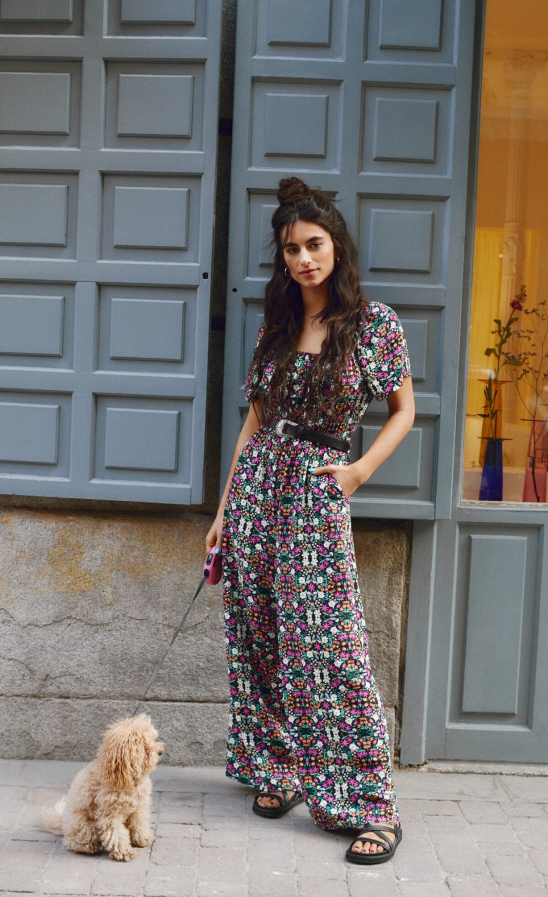 Ahora sí nos salimos de los exclusivos vestidos que nos ofrece Springfield para flipar con su mono largo con estampado de flores. Se ajusta a la cintura, estiliza el cuerpo, es fresquito, cómodo y precioso. Cuenta con manga corta y escote cuadrado para conservar el ‘confort’. Es súper fácil de combinar con otras prendas y, según con qué lo lleves, puede convertirse en una prenda para salir a cenar con tus amigas o ir a hacer trámites mañaneros.