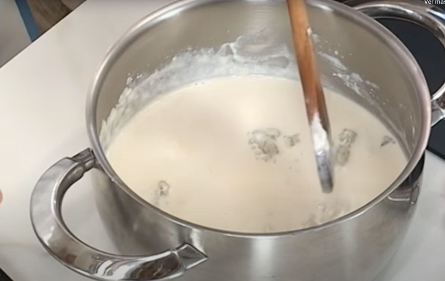 Agrega la nata con el caldo de pollo y mezcla todo con una espátula de cocina hasta que los ingredientes estén bien integrados. Asegúrate de que la crema de queso gorgonzola tenga una textura suave y homogénea. Si es necesario, puedes utilizar una batidora de mano para obtener una consistencia aún más cremosa. Reserva hasta que estés listo para utilizarla en la preparación del plato. Con esta crema de queso gorgonzola casera y deliciosa, estarás listo para continuar con la receta de los macarrones de Martín Berasategui.