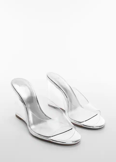 Si estás buscando unas sandalias que sean originales y estén en tendencia, estas sandalias de vinilo con cuña transparente son la opción perfecta. Con un diseño moderno y vanguardista, presentan una punta cuadrada y una cuña alta, con un panel de vinilo transparente que crea un efecto óptico de pierna más larga y estilizada.