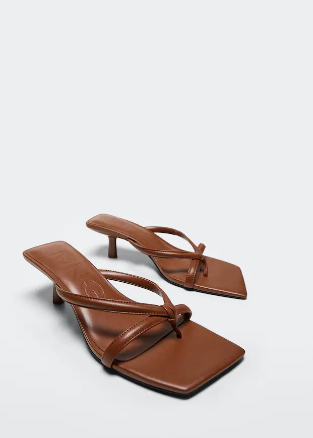 La sandalia destalonada está en máxima tendencia esta temporada así que te encantará este modelo de Mango. Con su punta cuadrada y tacón estilo kitten, destacan por su elegancia y estilo refinado. Están confeccionadas en un 100% de piel caprino, lo que asegura su calidad y resistencia. El diseño de tiras le da un toque moderno y sofisticado, perfecto para ocasiones especiales.