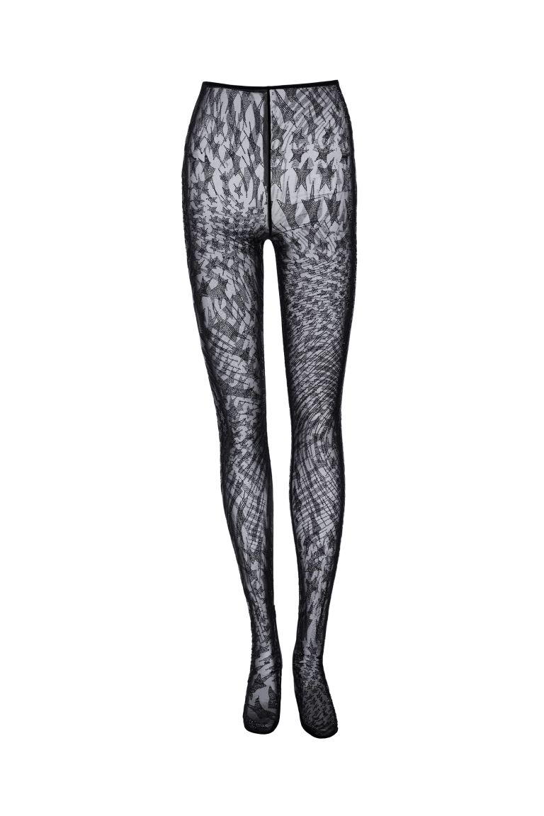 Estas mallas transparentes de H&M son ideales para tus looks de noche más especiales y atrevidos. Están diseñadas con el icónico diseño de estrellas en espiral salpicado de strass, lo que les da un brillo deslumbrante. La cintura elástica con cierre oculto de corchete y cremallera con tirador de estrella en la parte trasera asegura un ajuste cómodo y seguro. El talle alto de las mallas favorece la figura y proporciona una apariencia estilizada. Son de color negro y tienen un precio de 99 euros.
