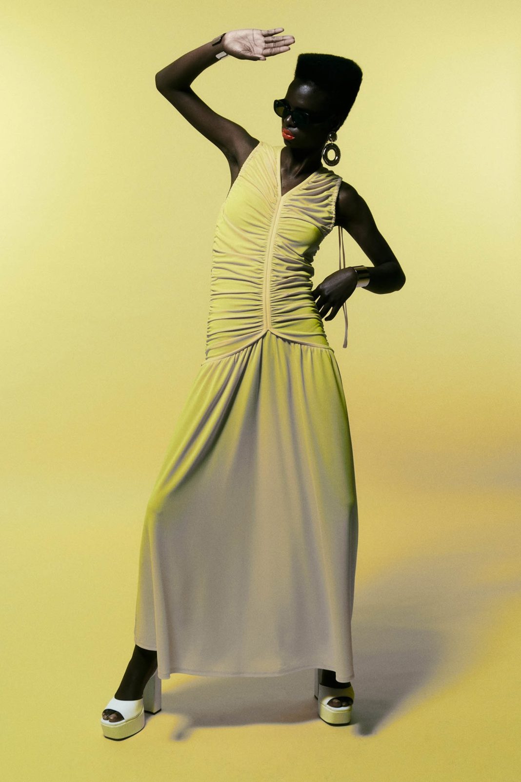 Sfera está apostando fuerte por los frunces, como ya te habrás podido dar cuenta. Con la sensación de prenda pegada al cuerpo realza silueta, pero con movimiento. Denota que su sello de identidad sigue siendo realzar el cuerpo y lograr una diferencia respecto a su competencia. Es indiscutible que lo está logrando con una colección completamente distinta a lo que se ve en otras marcas. El cuello pico, sin duda, es otro plus. Vale 35,99 euros. Encima de precioso, ¡es más barato que los anteriores!