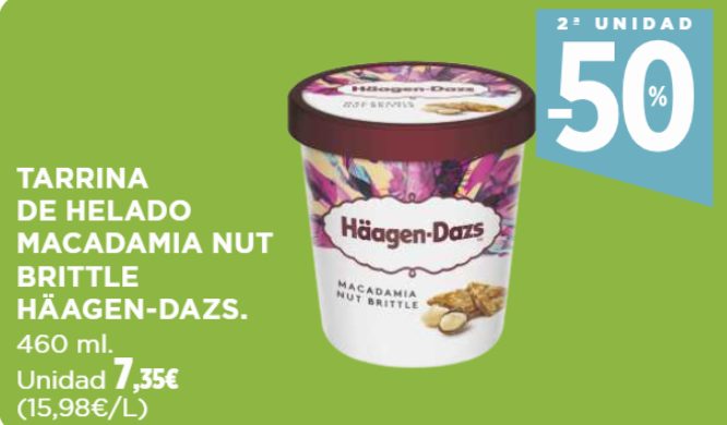Con la llegada del verano, uno de los alimentos que no pueden faltar es el helado. En esta ocasión, cabe destacar que una de las marcas más reconocidas del mercado es Häagen-Dazs. En Supercor podrás encontrar esta tarrina de Macadamia Nut Brittle, así como otras de la misma línea, por 7,35 euros la unidad. Sin embargo, si te llevas dos, la segunda unidad te saldrá por tan solo 3,68 euros.
