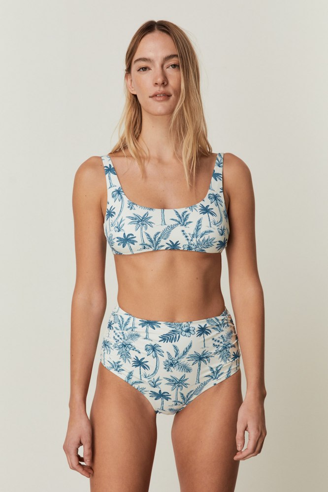 Si lo que buscas es una parte de abajo del bikini, dentro de la sección de ropa de baño de Sfera también encontrarás una buena cantidad de opciones. Una de las que más destaca es esta braguita. Gracias a su estampado de palmeras, en tono azul, es una de las alternativas más veraniegas. Además, su talle alto la hace una opción muy cómoda. Y todo por tan solo 13,99 euros.