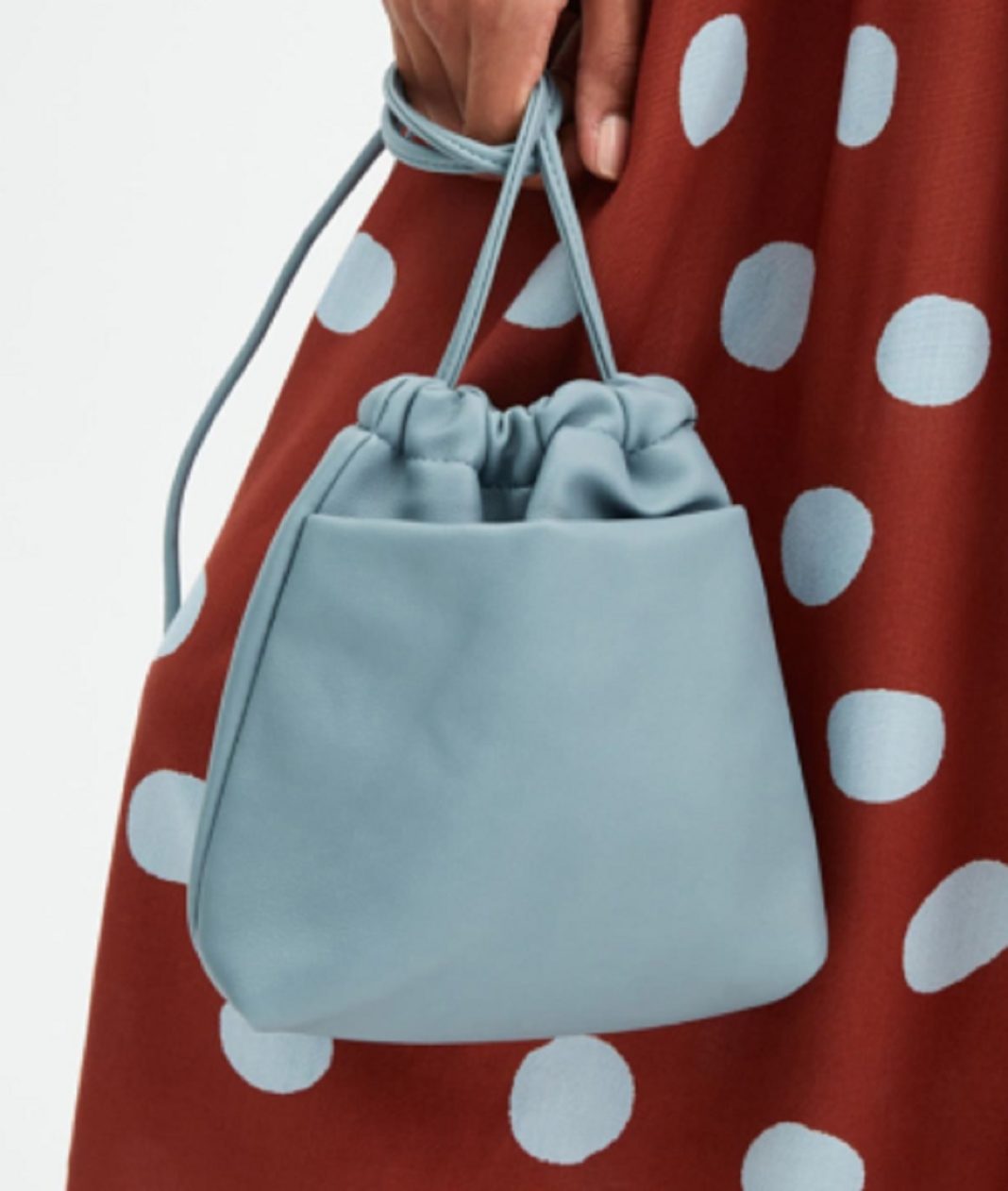 Menuda cucada es este bolso azul grisáceo. Es tipo saco y se ajusta a tu conveniencia. Es muy útil para instancias en las que se tienen eventos que comienzan por el día y terminan por la noche. Se puede dejar el asa más larga en un ambiente distendido de día y tenerlo corto por la noche. Su precio es 32,95 euros.