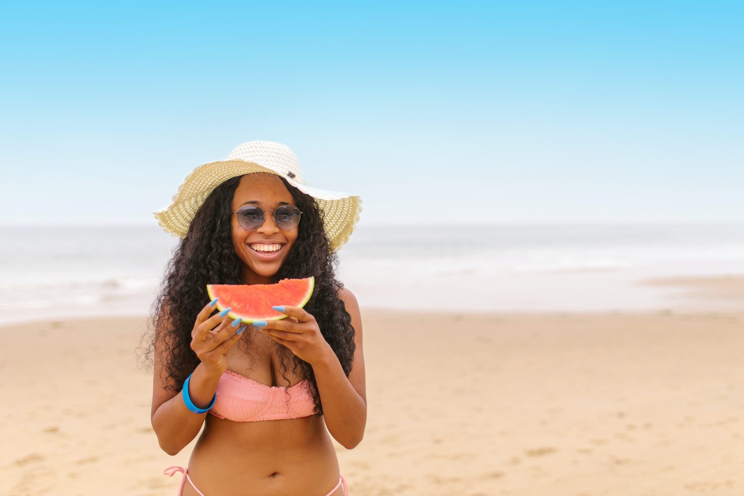 Para una piel sana en verano, es recomendable comer sandía. Esto no es sacrificio para algunas personas enamoradas de esta fruta, ya que abunda en verano. Aporta un alto contenido de licopeno, un compuesto que ayuda a que el riesgo de padecer quemaduras en la piel baje. Asimismo, destaca por su frescura, muy buscada durante los meses de verano. Aquellos que no están muy habituados a comer fruta encuentran un gran respaldo en batidos y yogures hechos a raíz de esta fruta.