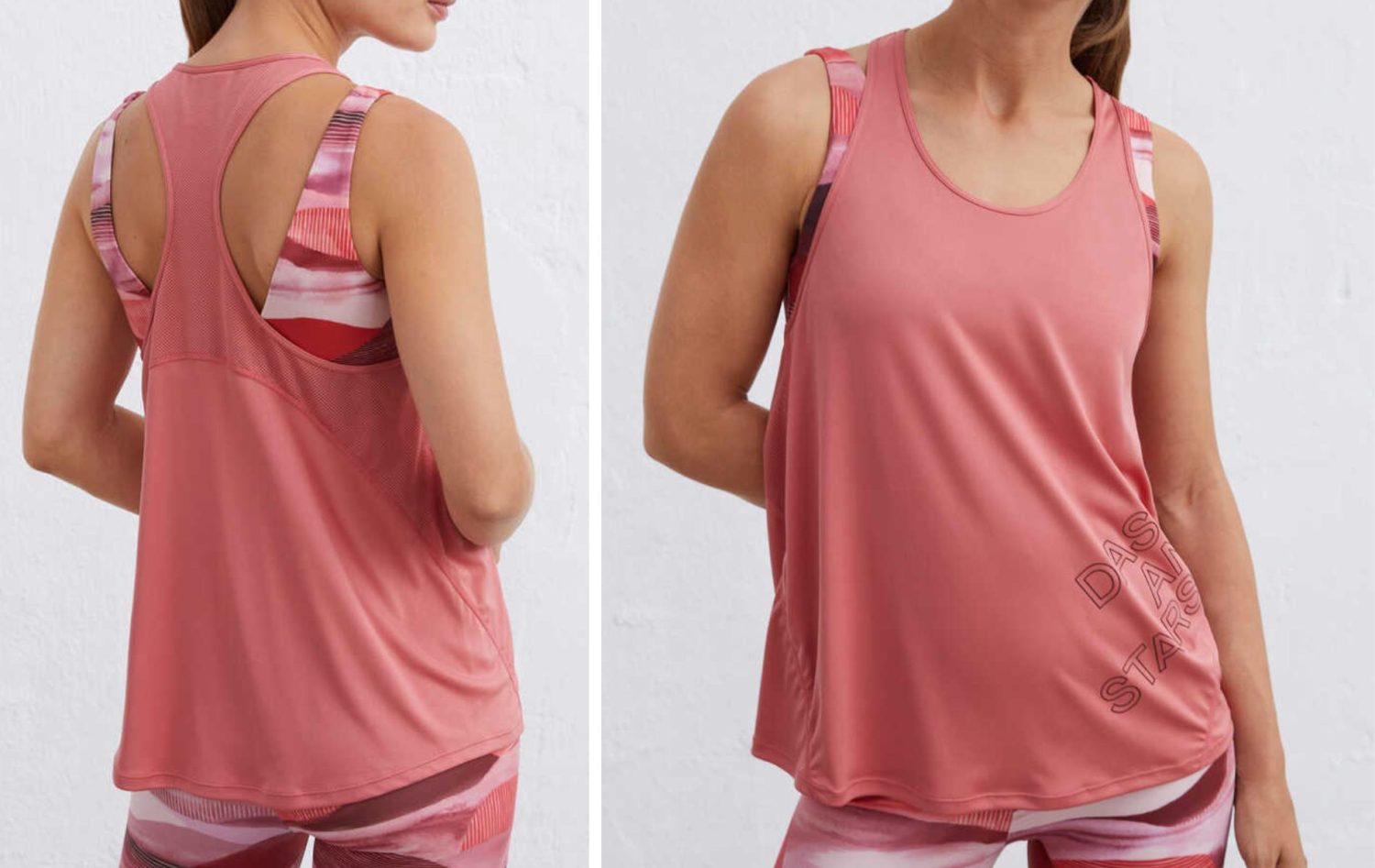 2Camiseta tirantes olímpica en rosa salmón: Combínala con los leggings y sujetador 4D Stretch