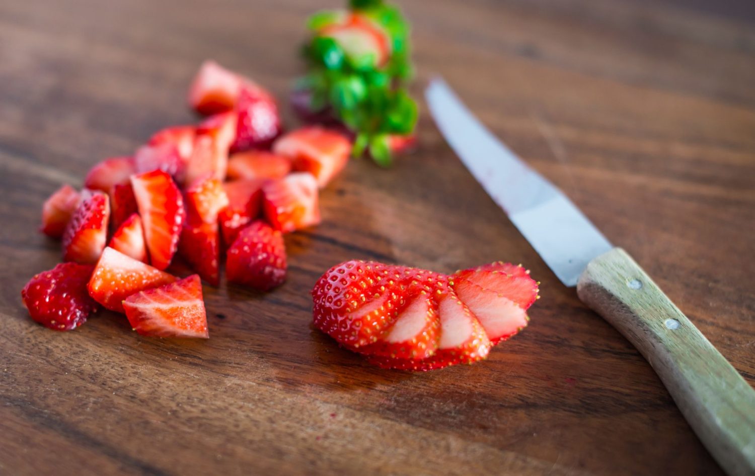 En una cazo, coloca las 75 g de fresas troceadas junto con el agua y los 25 g de azúcar. Llévalo a ebullición y deja cocer a fuego bajo-medio durante aproximadamente 7-8 minutos. Tritura la mezcla y deja que se enfríe. Mientras tanto, precalienta el horno a 180º C. En el microondas, derrite 100 g de chocolate troceado junto con 100 g de mantequilla. Remueve hasta obtener una crema suave y homogénea.