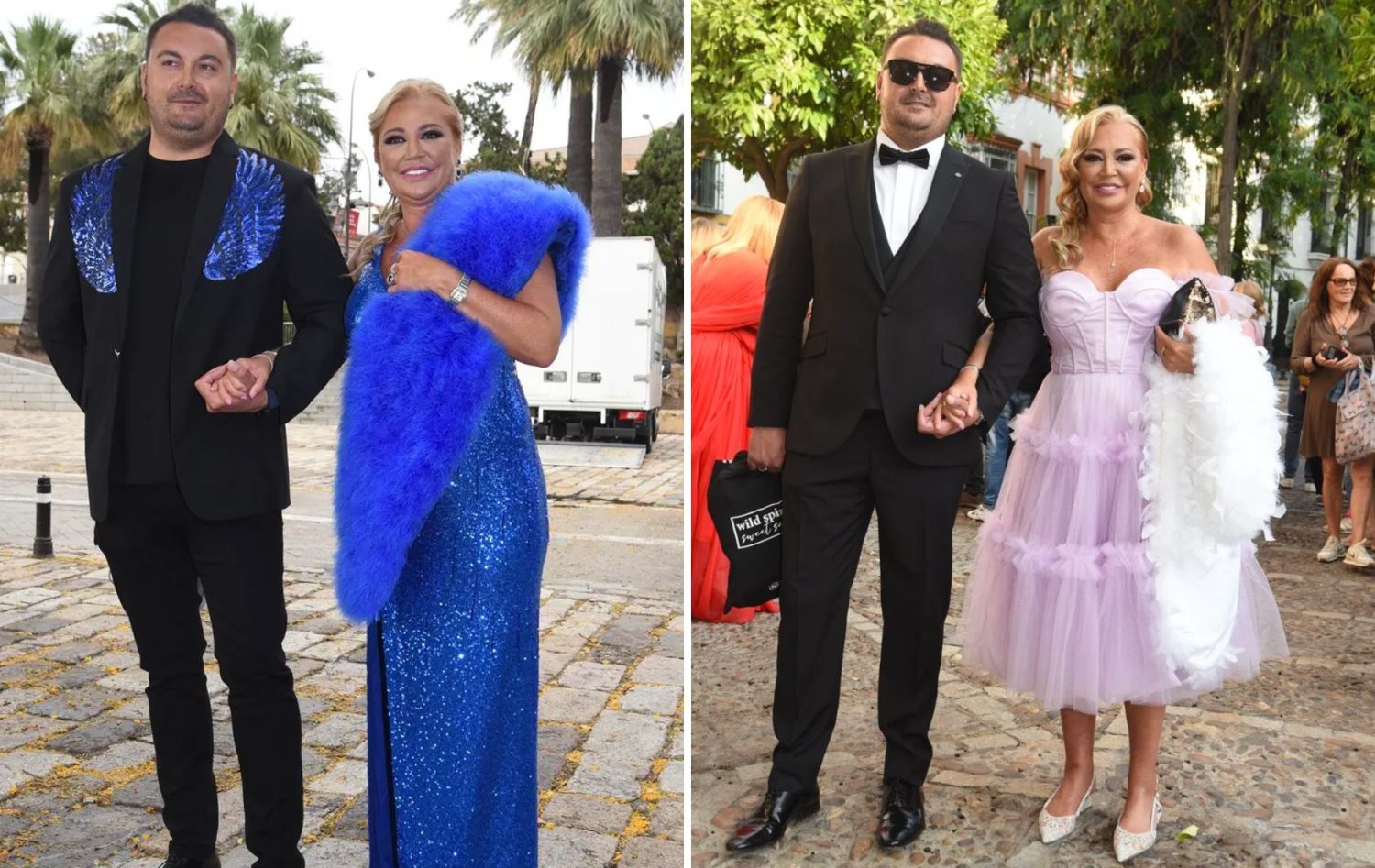 Belén Esteban, siempre reconocida por su estilo único y original, no defraudó en la preboda luciendo un deslumbrante vestido largo de lentejuelas en un llamativo color azul eléctrico. Completó su look con una elegante estola a juego y unos zapatos blancos que resaltaban su estilo. En la boda, sorprendió con un vestido rosa donde el tul era el protagonista absoluto, mostrando su lado más romántico. Para mayor comodidad, Belén optó por tacones bajos en un primer momento, pero más tarde cambió a unas zapatillas en rosa y negro que complementaban a la perfección su atuendo.