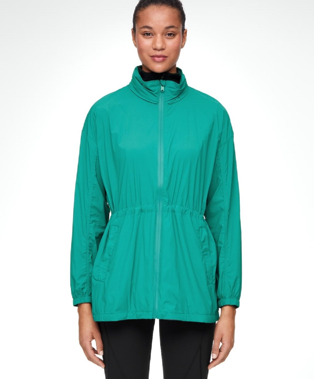 Además de un vestido colosal en el que parece que una aparición ha llegado a la pista, la marca ofrece esta chaqueta súper top para hacer ‘running’. Es repelente al agua y resulta una protección ideal contra el viento en tejido y calidad ultraligera. Cuenta con detalle de paneles transpirables y banda reflectante en la parte trasera. Asimismo, tiene bolsillos laterales con cierre mediante cremallera y capucha oculta. Su cintura es ajustable mediante cordones interior. Está disponible en color esmeralda delavado y rosa flúor. Su precio es 45,99 euros.