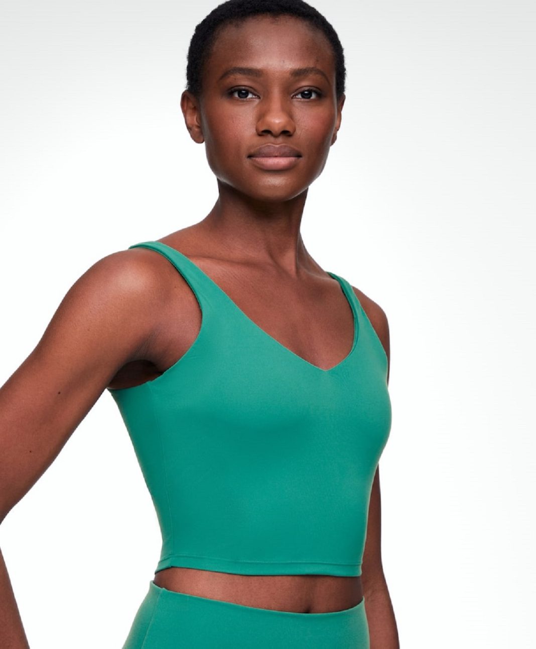 Cuando vamos al gimnasio o a entrenar es difícil no ver chicas con top de tirantes. No es una cuestión de común, sino de comodidad. Para tener plena libertad de movimiento hay pocas prendas que sean más cómodas que esta. Encima la marca de Inditex tiene este suculento diseño que nos hace volar la imaginación con su escote triangular y tirantes. Además, posee un sujetador integrado en la camiseta con abertura para añadir copas. Su tejido es de alta resistencia, tiene protección solar UPF+40, permeable al vapor de agua y se seca rapidísimo. Disponible en varios colores. Su precio es 17,99 euros.