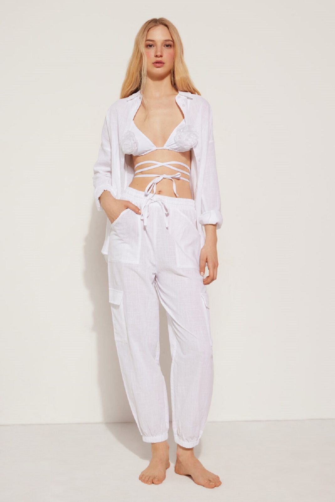 2Pantalón Largo Estilo Cargo de Tela de Algodón blanco