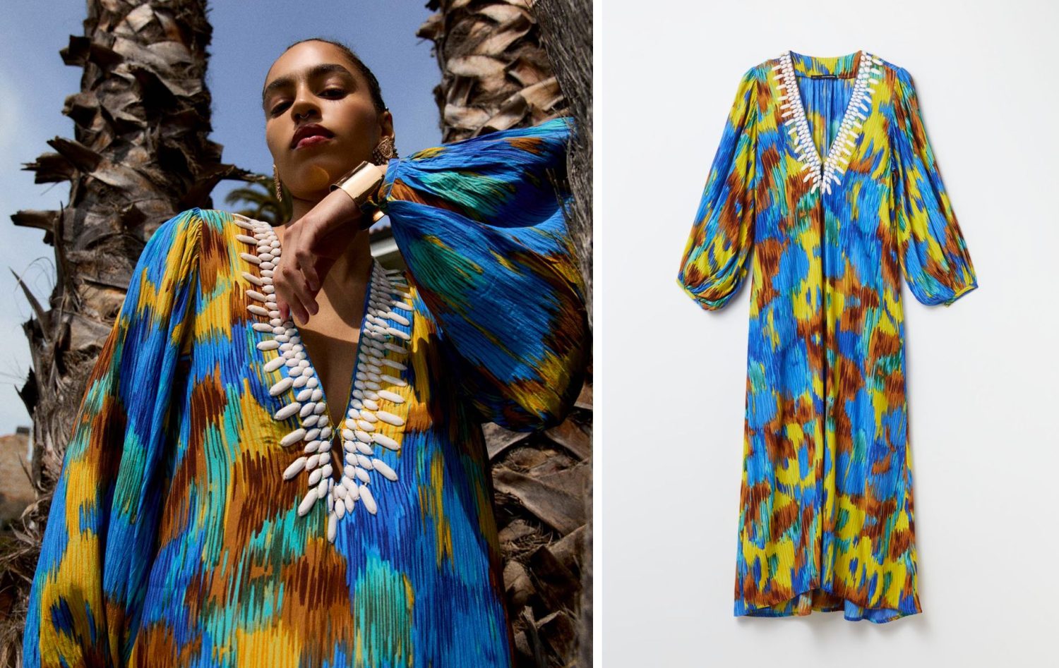 1¡La túnica larga estampada con pedrería bordada en el escote de Sfera es simplemente impresionante!
