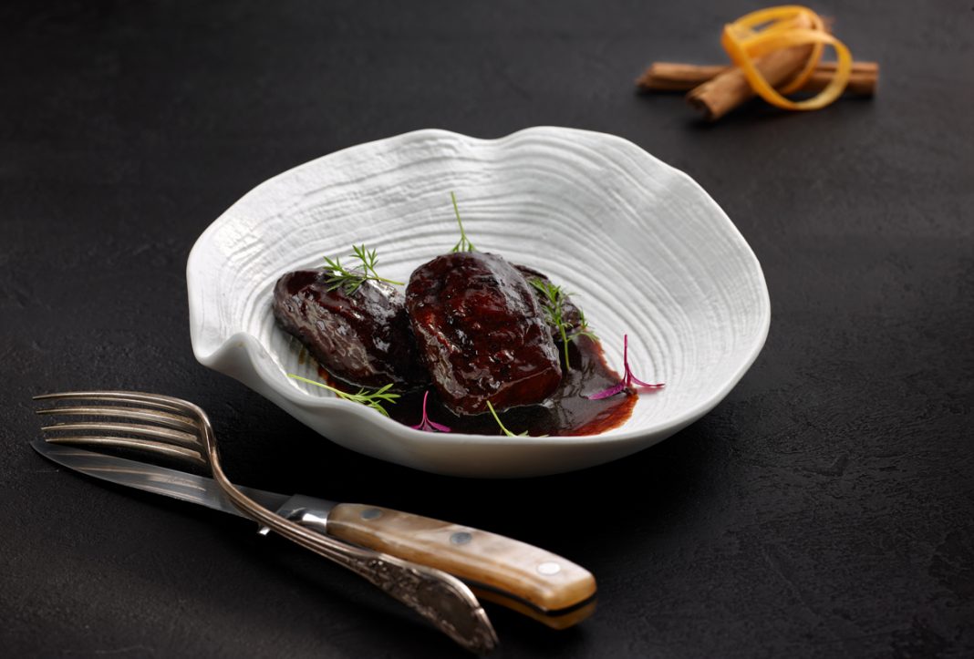 La receta de Martín Berasategui comienza así. Eliminamos los restos de grasa que pueda tener la grasa y salpimentamos. Ponemos a calentar la olla donde se vaya a cocinar a fuego vivo con un solo chorrito de aceite de oliva. Cuando el aceite ya esté caliente, agregamos las carrilleras y marcamos por todos lados. No deseamos que la carne se cocine por delante, solo buscamos en este punto que quede sellada y dorada por fuera. Cuando estén listas, quitamos de la cazuela.