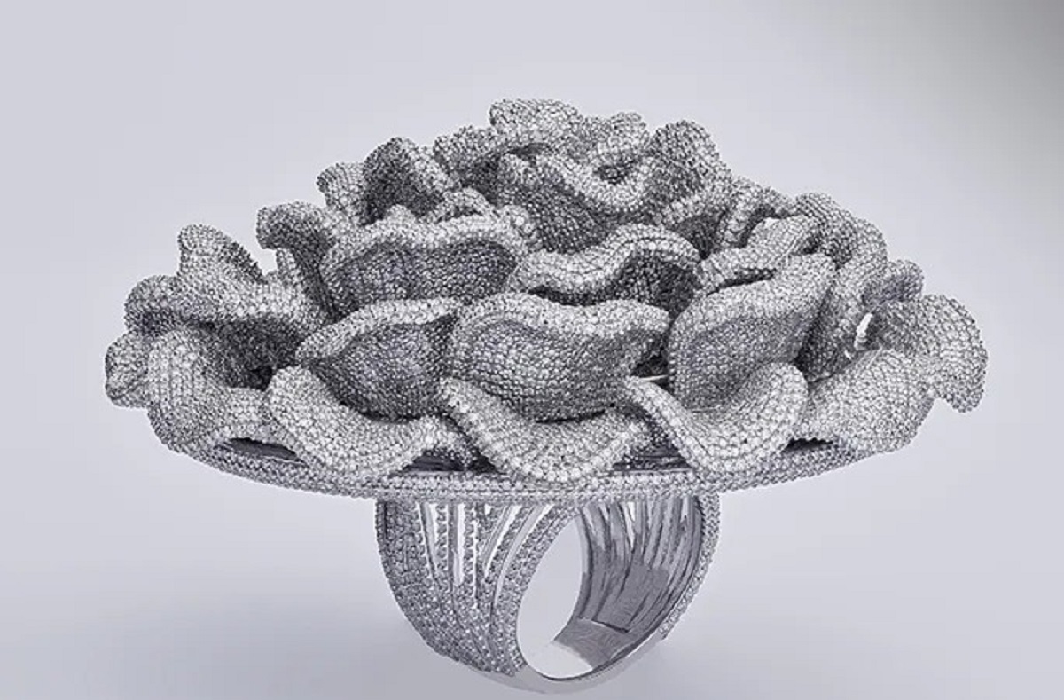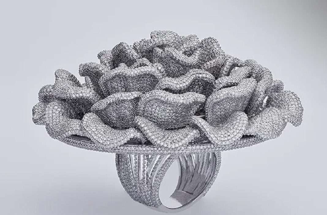 Si de cosas impresionantes hablamos resulta imposible dejar de nombrar el anillo con más diamantes del mundo, según los Guiness World Records, casi 25.000. Fue hecho por SWA Diamonds, un joyero con sede en India. Su increíble pieza se titula “Touch of Ami”. Su maravilloso diseño cuenta con el récord mundial de número de diamantes engarzados, teniendo en total 24.679 piedras, el doble de que tenía el poseedor anterior de este logro. Su llegada al mundo fue inspirada en el hongo ostra rosado y tiene una parte superior expansiva parecida a la de una flor que cubre la mayor parte de la mano.