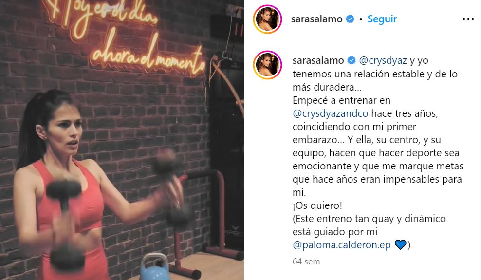 Crys Dyaz se ha convertido en el nombre que acompaña los entrenamientos de algunas de las famosas más reconocidas. Y es que no solo Sara Sálamo confía en su profesionalidad, sino que otras celebrities, como María Pombo, Laura Escanes o actrices como Blanca Suárez, también han seguido sus rutinas has convertirlas en virales. La entrenadora destaca por llevar a cabo rutinas específicas para cada persona, consiguiendo cambiar el físico de las interesadas en un tiempo récord a través de mucho trabajo y esfuerzo, como podemos ver en redes como Instagram.