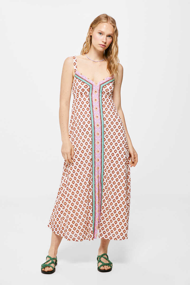 En el caso de que estés buscando un vestido bonito y fácil de combinar, perfecto tanto para utilizarlo a diario como en eventos más formales, este de Springfield también te encantará. Llama la atención gracias a su corte midi, así como por su diseño de cenefa vertical en verde, un tono contraste que estilizará tu figura. En cuanto a su precio, te puedes hacer ya con él en la sección de novedades de la tienda por tan solo 35,99 euros. Sin duda, una gran oportunidad.